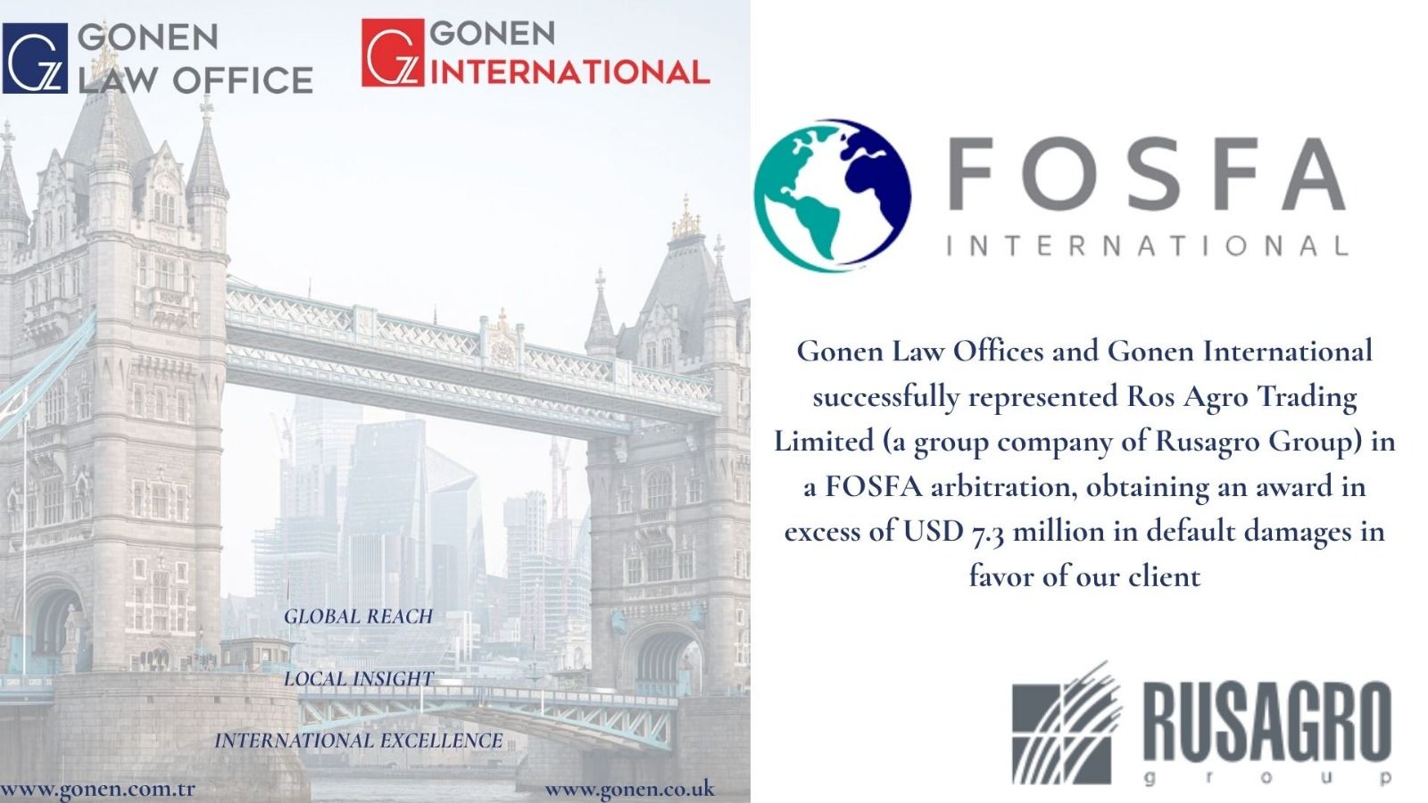 Gonen Law Offices and Gonen International are proud to announce a significant success in FOSFA arbitration proceedings initiated on behalf of our client, Ros Agro Trading Limited — a group company of Rusagro Group.