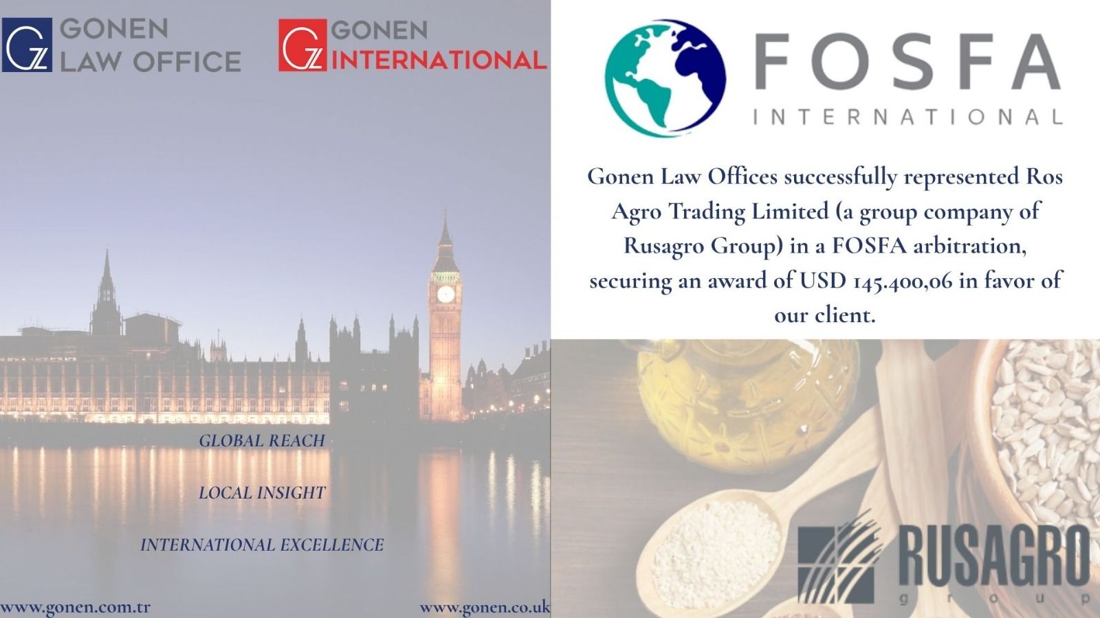 Gönen Law Offices and Gönen International are proud to announce a significant success in FOSFA arbitration proceedings initiated on behalf of our client, Ros Agro Trading Limited — a group company of Rusagro Group.